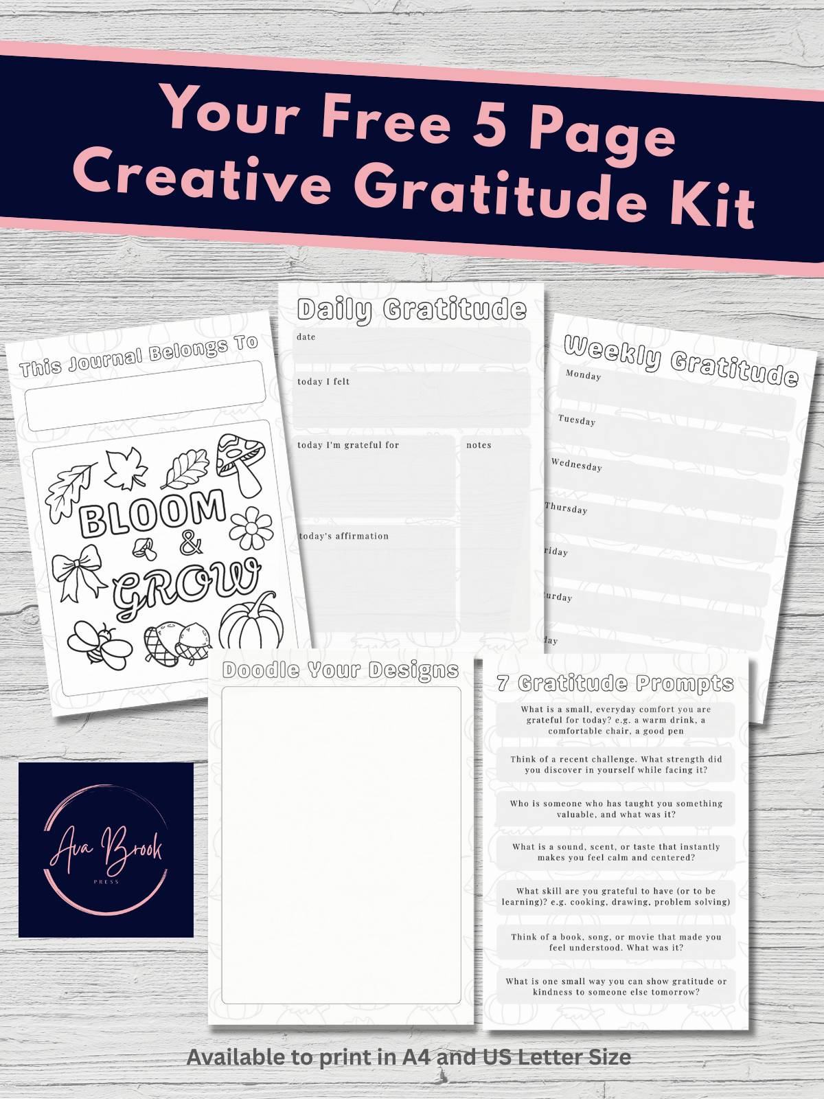 A "Bloom & Grow" colouring page to help you unwind. A doodle page to let your creativity flow!